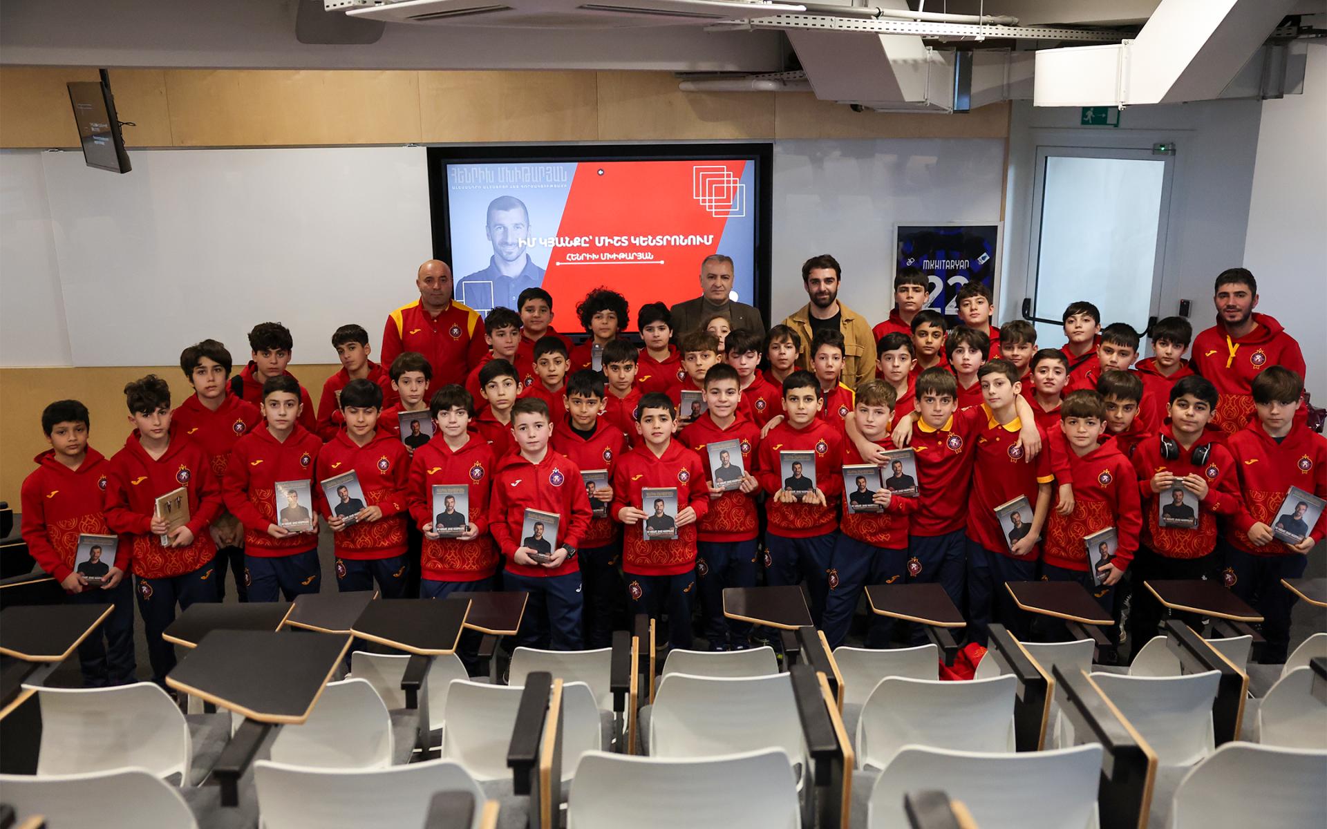 Միջոցառման վերջում Վարդան Մինասյանը և Դավիթ Մանոյանը մեր պատանի ֆուտբոլիստներին հանձնեցին Հենրիխ Մխիթարյանի ինքնակենսագրական գրքից։